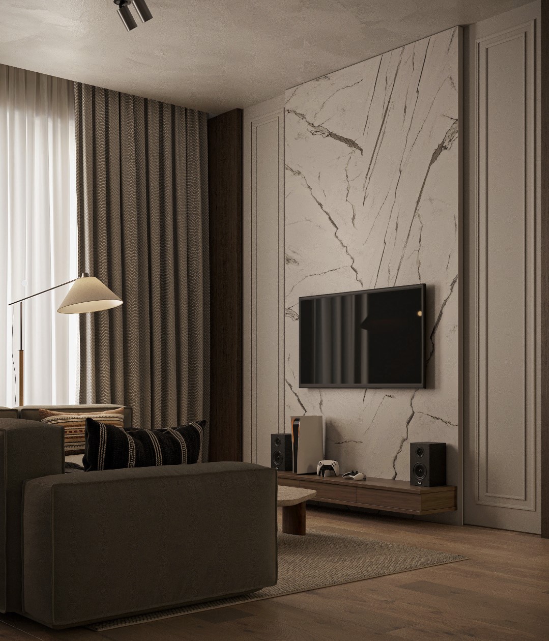 Aceasta amenajare este ideala pentru cei care isi doresc un interior contemporan, cu un design coerent, materiale premium si un aer usor masculin, dar primitor.